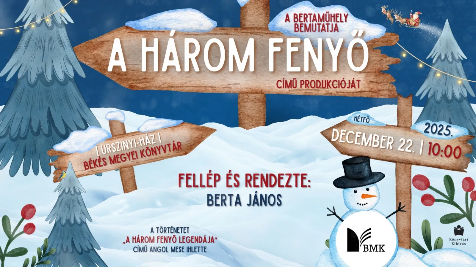 A három fenyő" története szól a Karácsonyról, a szeretetről és egy kicsi Cinege madárkáról, aki a nagy hidegben eltörte a szárnyát... A történetet „A három fenyő legendája" című angol mese ihlette.