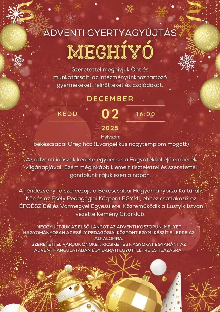Az Evangélikus Nagytemplom mögötti öregház udvarán meggyújtják az adventi koszorú első gyertyáját.