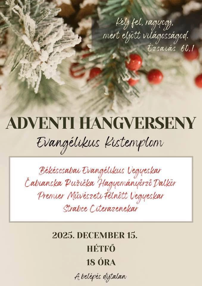 Az Békéscsabai Evangélikus Vegyeskar és vendégei adventi műsora.