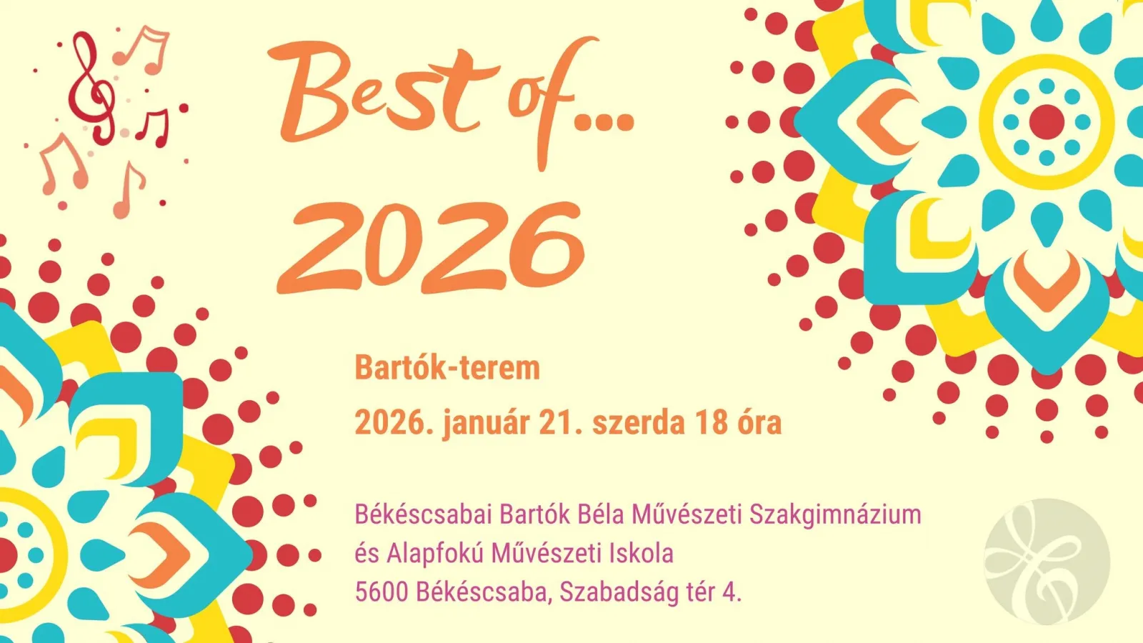 A Best of... 2026 koncert betekintést enged a - Békéscsabán több, mint 40 éve működő - Bartók Béla Művészeti Szakgimnázium igen magas színvonalú szakmai munkájába.