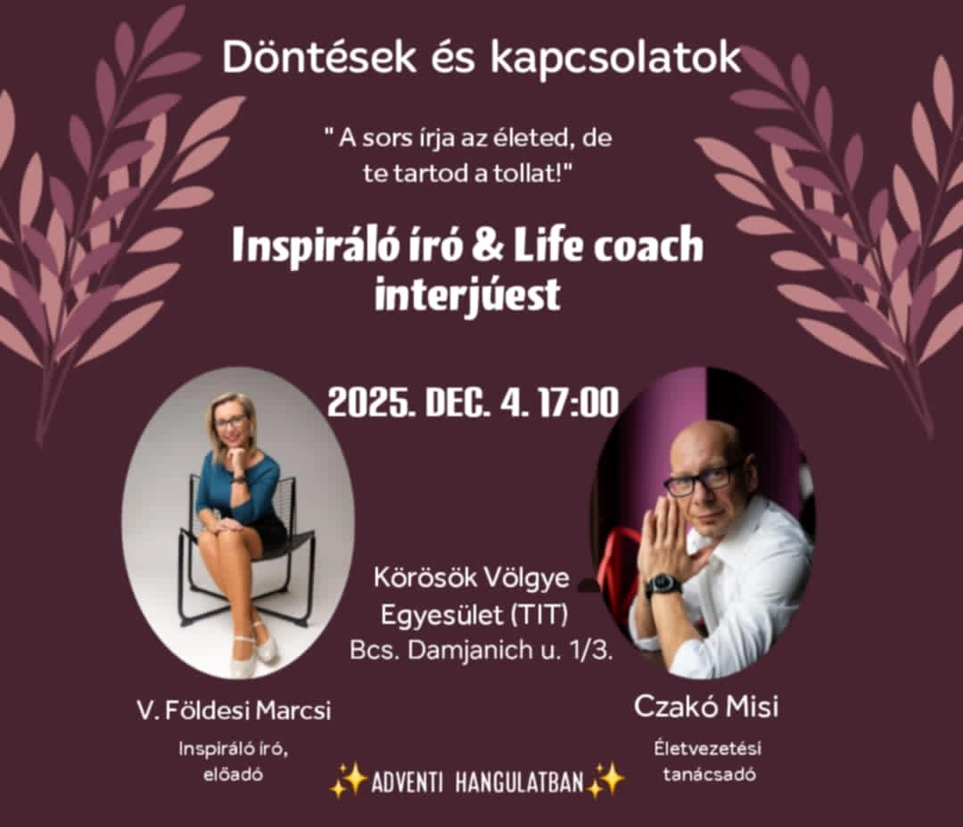 Inspiráló író és egy életvezetési tanácsadó interjúestje.