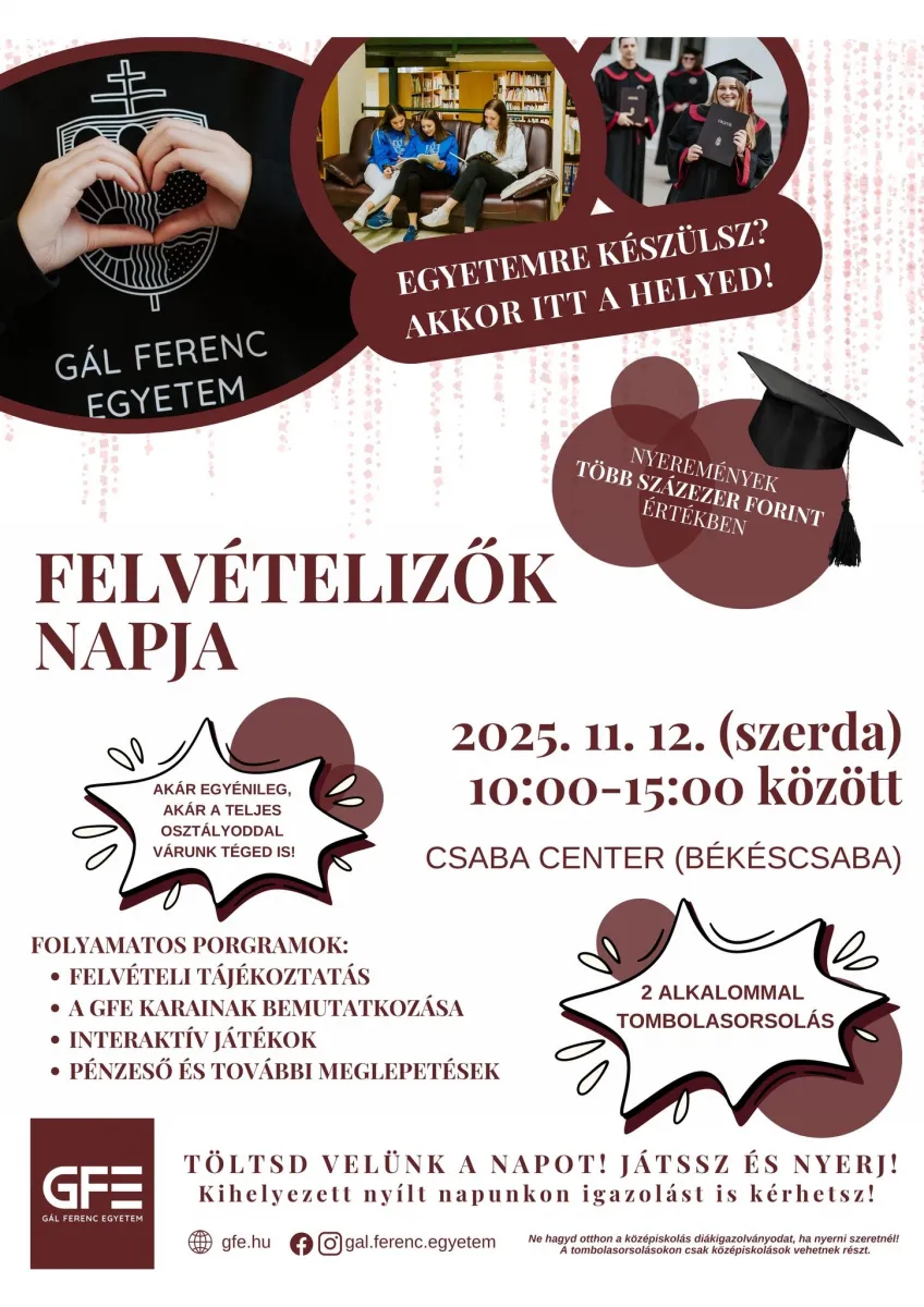 Várnak minden középiskolást, osztályfőnököt, középiskolai tanárt, szülőt 10 órától a Csaba Centerben!