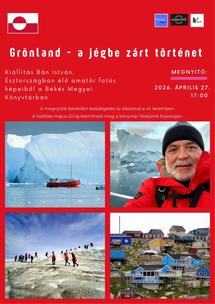 A FinEst Projekt szervezésében megvalósuló fotókiállítás a világ egyik leglenyűgözőbb és legkülönlegesebb vidékére repíti az érdeklődőket. Bán István, Észtországban élő amatőr fotós képein keresztül bepillantást nyerhetünk Grönland fagyos, mégis lélegzetelállító világába: jéghegyek, végtelen tájak, apró színes települések és az emberi kitartás történetei várják a látogatókat.
