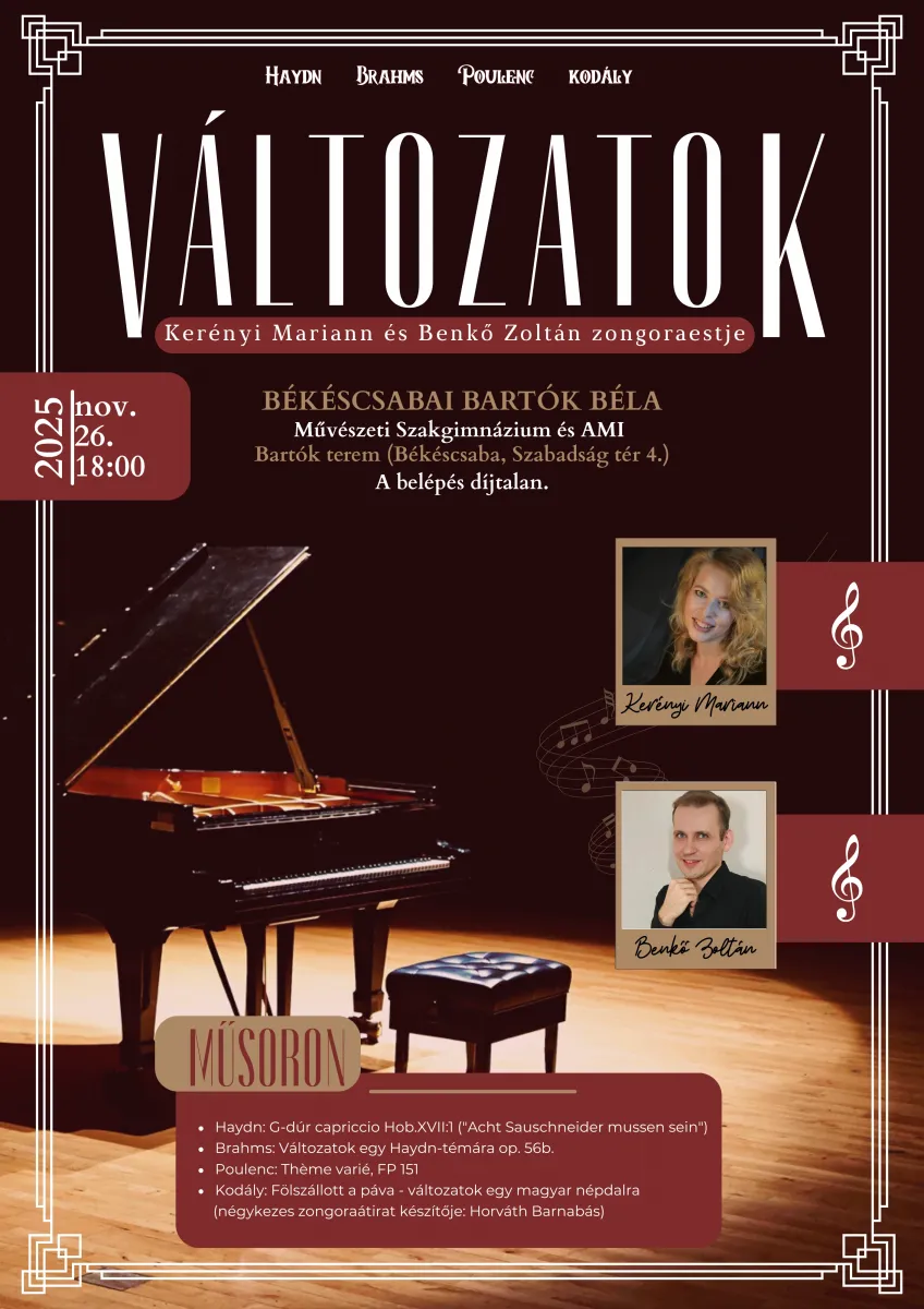 Ingyenes hangverseny a Bartók Béla Művészeti Szakgimnázium és Alapfokú Művészeti Iskola Bartók termében