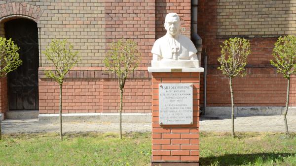 Bartoss Ferenc, pápai prelátus, székesegyházi kanonok, prépost, plébános mészkőből készült mellszobra…