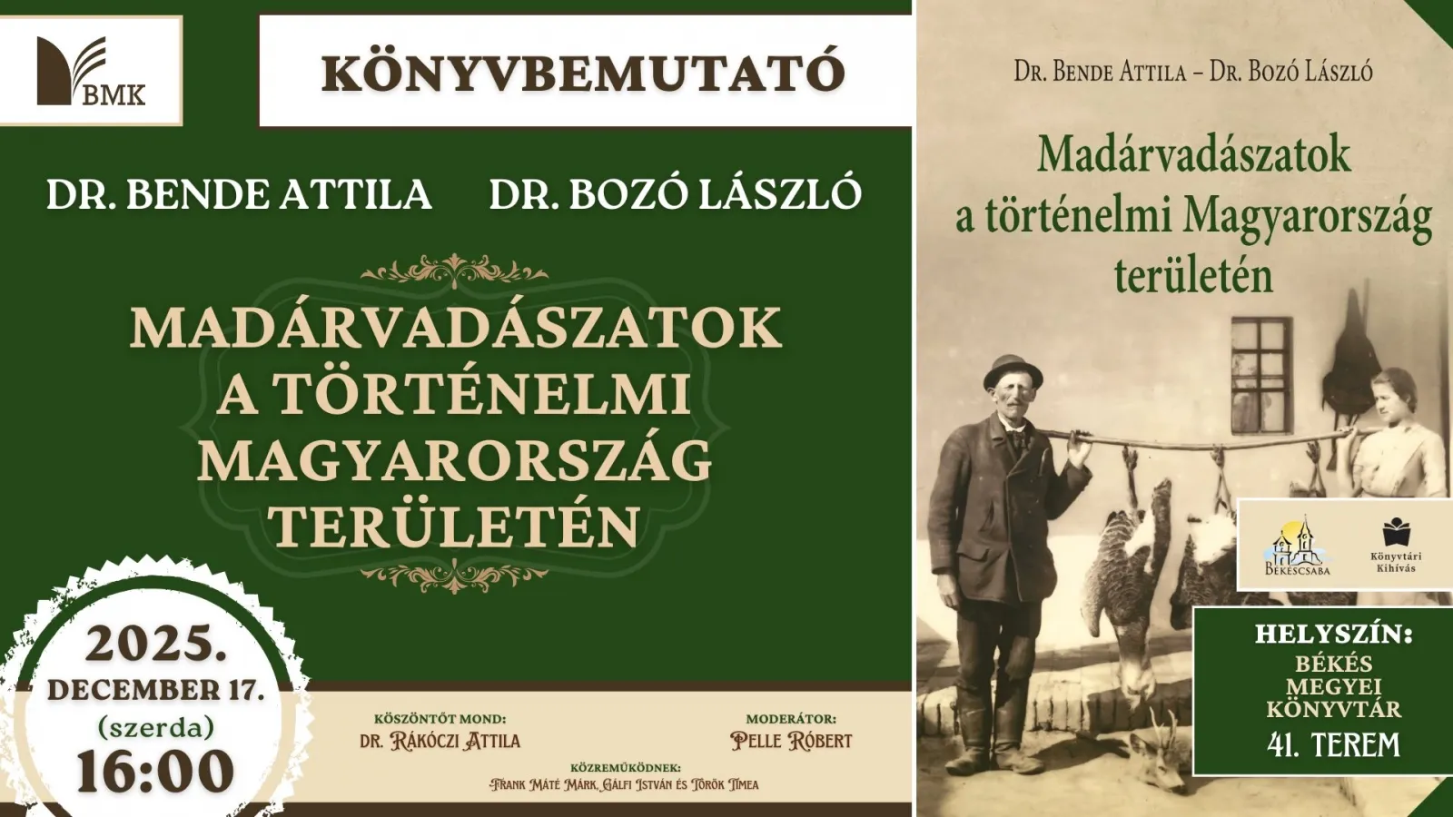 Dr. Bende László erdőmérnök, vadbiológus és dr. Bozó László okleveles biológus, ökológus Madárvadászatok a történelmi Magyarország területén című könyvének bemutatójára.