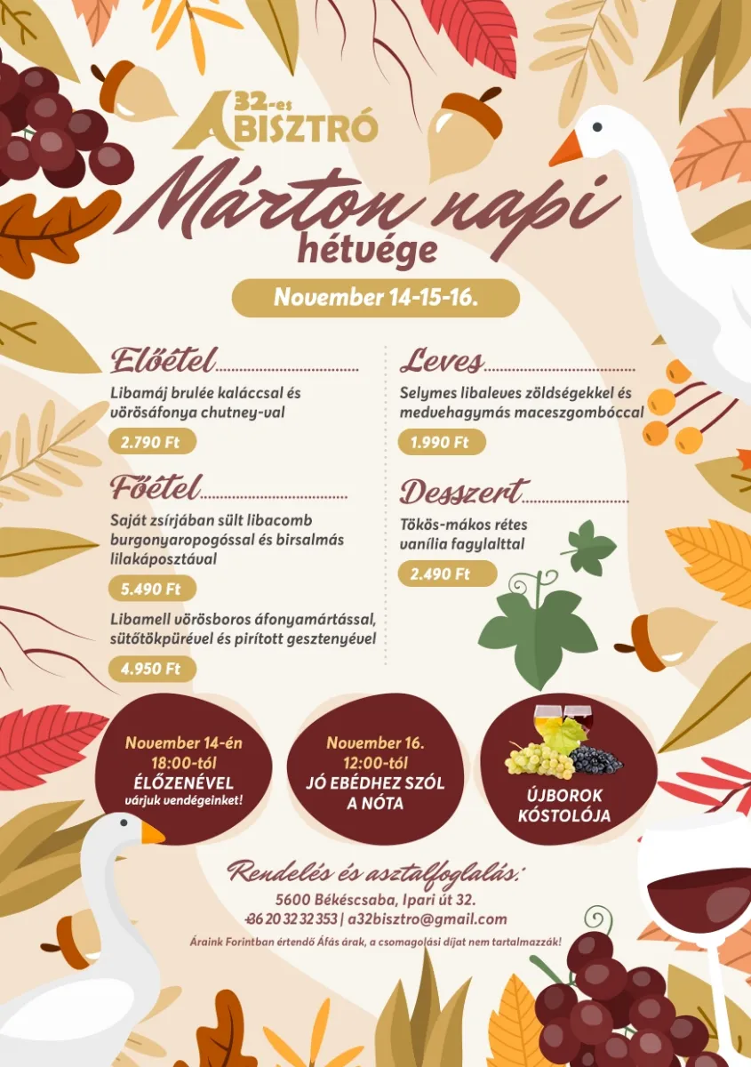 November 14-16. között különleges libás fogásokkal, újborokkal és élőzenével várnak mindenkit!