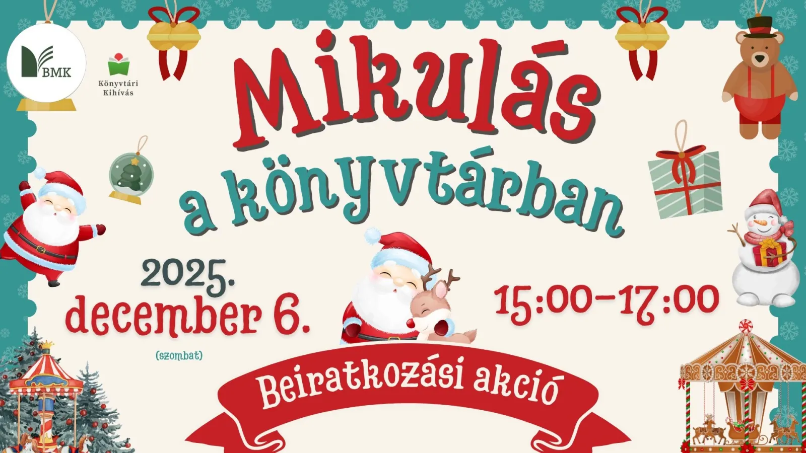 Olvasson fel ezen a délutánon egy kedves mesét vagy osszon meg egy személyes emléket a könyvtár Mikulásával, és iratkozzon be kedvezményesen!