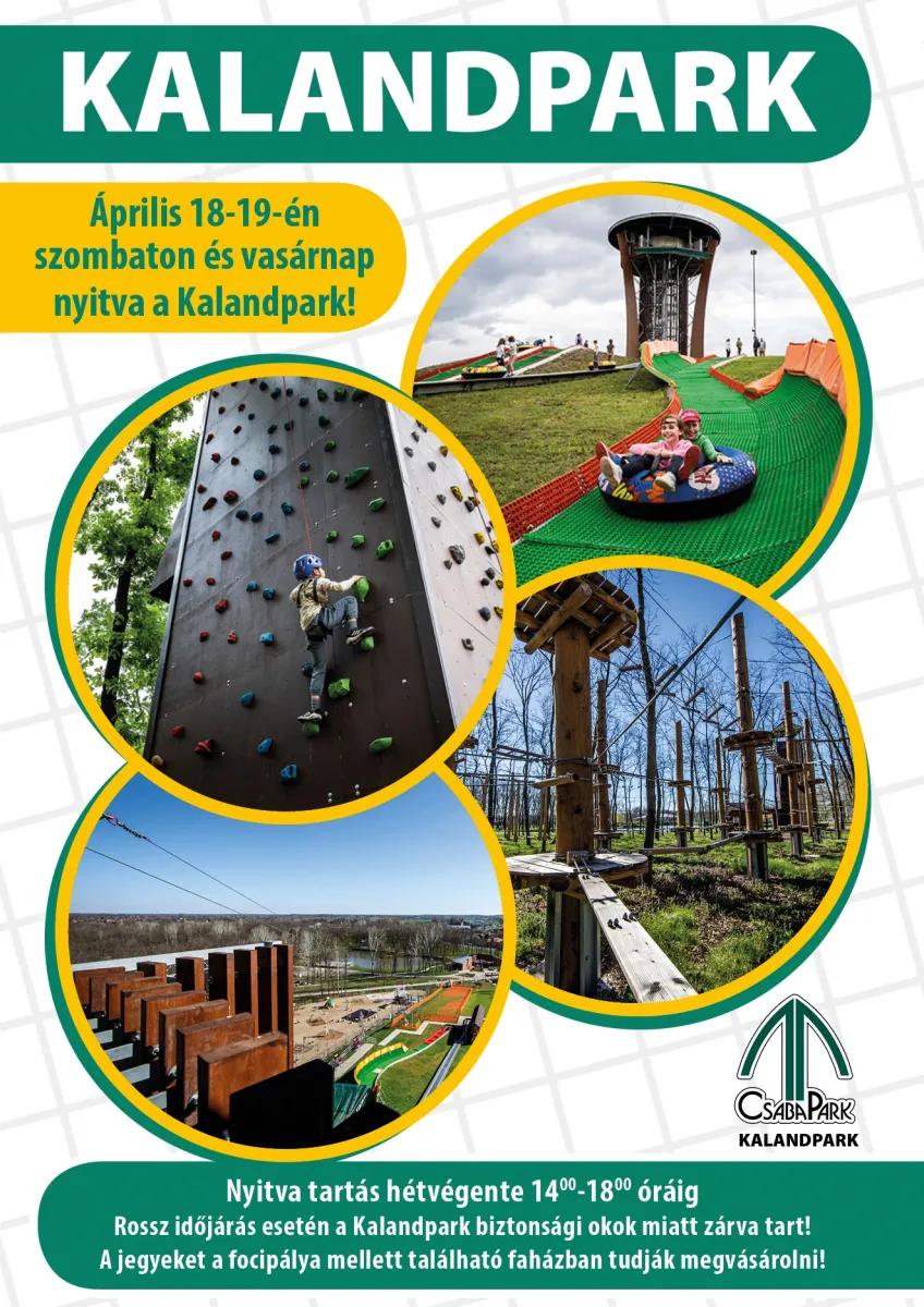 Április 18; 19-én-én 14:00-18:00 óráig nyitva tart a Kalandpark.