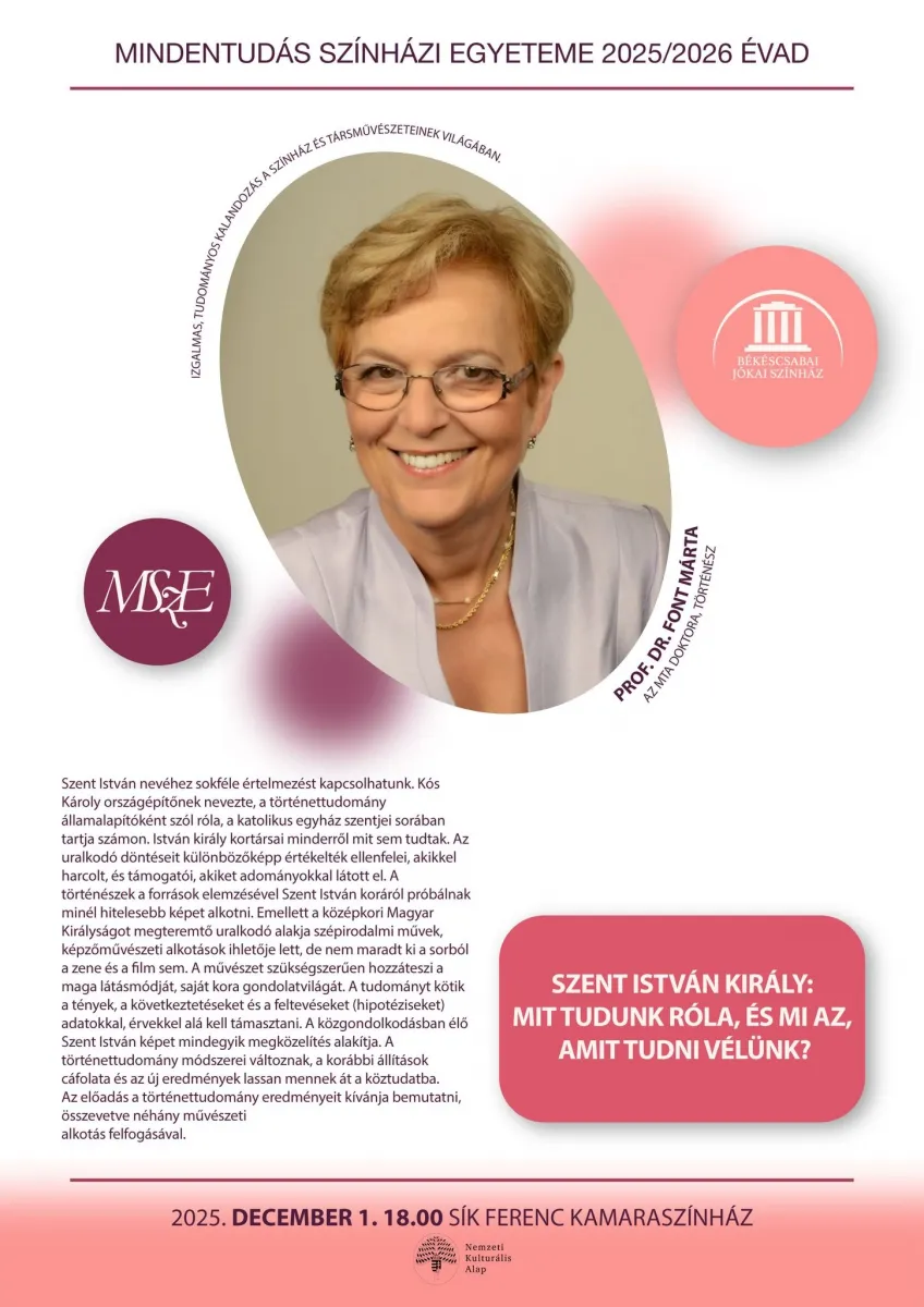 Előadó: Prof. Dr. Font Márta az MTA doktora, történész