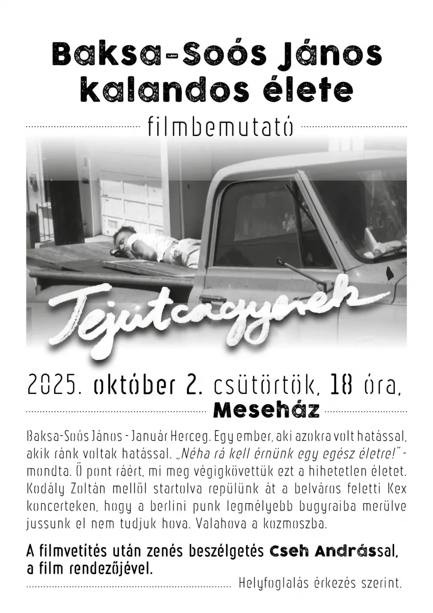 A filmvetítés után zenés beszélgetés Cseh Andrással, a film egyik alkotójával.