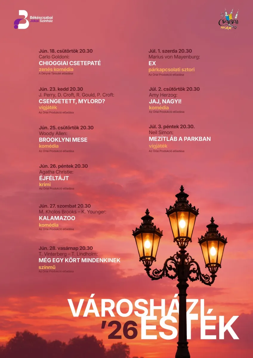 Jegyek kaphatóak ONLINE, valamint a békéscsabai Tourinformban.